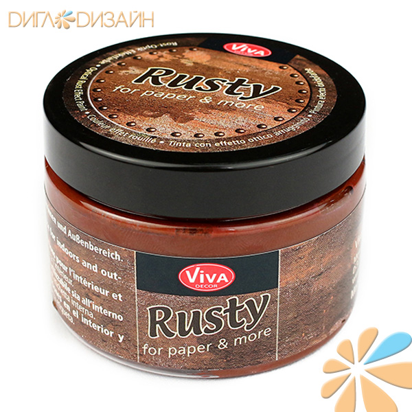 Rusty for paper&more от Viva Decor - это краска на водной основе с особенным эффектом ржавчины. Предназначена для декорирования бумаги, открыток, подарочной упаковки, скрапбукинга в стиле ретро, винтаж, стимпанк.