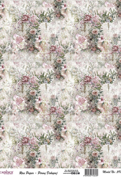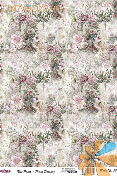 Rice Decoupage Paper A3, рисовая карта 698 орнамент цветы мелкий (30*41 см)