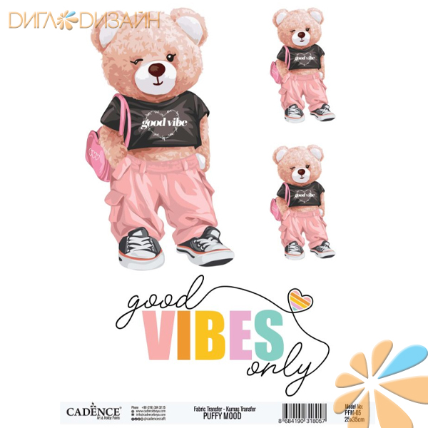 PUFFY MOOD / Cadence (Турция) Показать все Артикул и код Цвет Характеристики товара Единица 06070000125X35 39932 Трансфер для ткани PUFFY MOOD Fabric Transfer PFM-01 25x35см 06070000425X35 39933 Трансфер для ткани PUFFY MOOD Fabric Transfer PFM-04 25x35см 06070000525X35 39934 Трансфер для ткани PUFFY MOOD Fabric Transfer PFM-05 25x35см 06070000625X35 39935 Трансфер для ткани PUFFY MOOD Fabric Transfer PFM-06 25x35см
